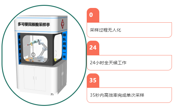 多可便民核酸采樣亭是集登記、采樣、存儲、轉(zhuǎn)運、消殺等功能于一體的全流程、智能化工作平臺;