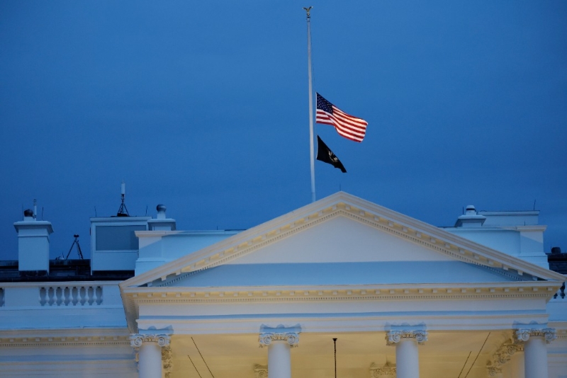 5月24日,在美國首都華盛頓,白宮降半旗向得克薩斯州槍擊事件遇害者致哀。新華社發(fā)(沈霆 攝)