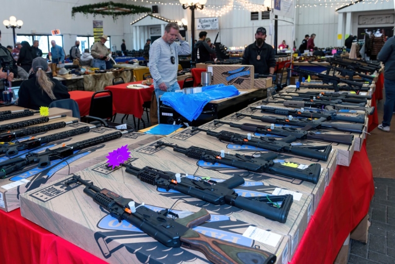 這是1月22日在美國達(dá)拉斯槍展上拍攝的槍支。新華社發(fā)(李琳攝)