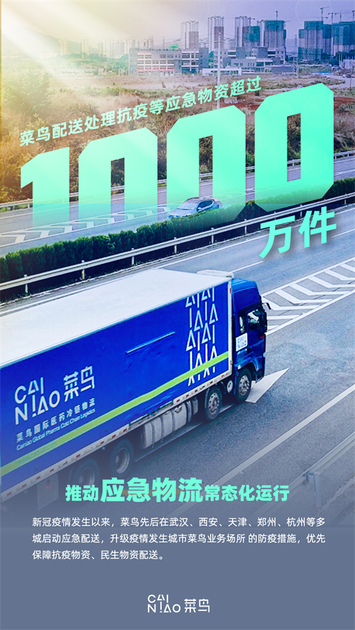 2022年第一季度,菜鳥(niǎo)在西安、香港、天津、沈陽(yáng)等近10所城市啟動(dòng)應(yīng)急物流,配送處理抗疫等應(yīng)急物資超過(guò) 1000 萬(wàn)件。