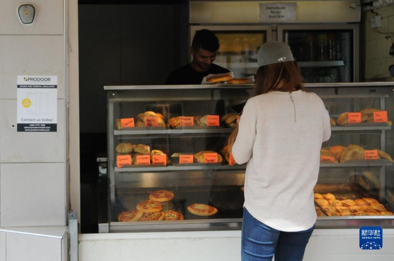 4月29日,顧客在馬耳他姆西達一家傳統(tǒng)美食酥皮餡餅店購物。新華社記者 陳文仙 攝