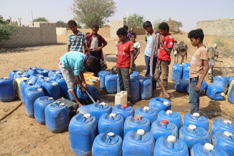 3月21日,孩子們在也門哈杰省一處慈善水站打水。新華社發(fā)(穆罕默德·瓦菲攝)