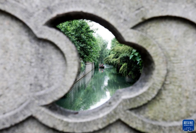 6月4日,環(huán)衛(wèi)工人在江蘇蘇州吉慶河上進(jìn)行河面清潔作業(yè)。