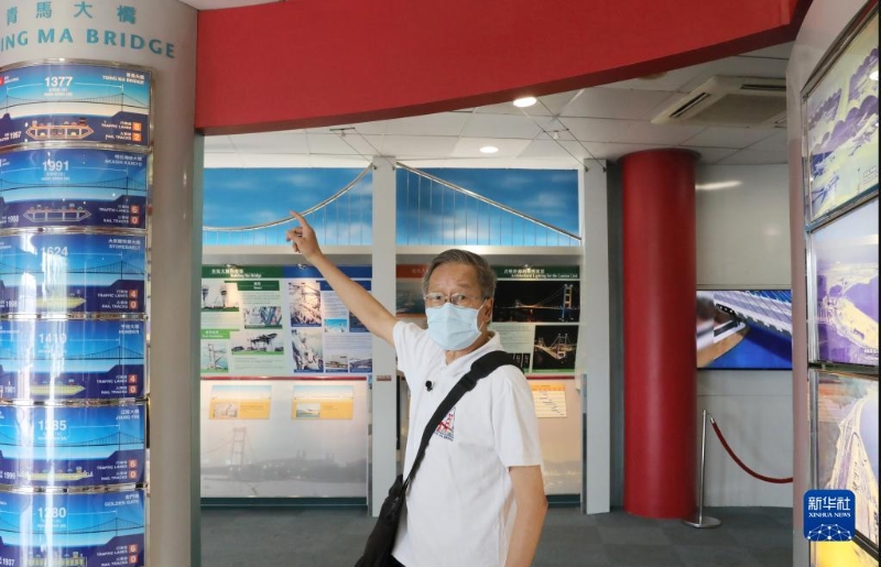 5月30日,劉正光在青衣島上的展室向新華社記者介紹青馬大橋。新華社記者 吳曉初 攝