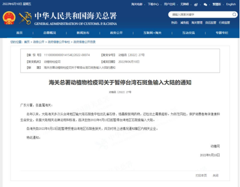 據(jù)臺(tái)媒報(bào)道,臺(tái)灣近年外銷石斑魚至大陸占整體出口均逾9成,但近年受到疫情消費(fèi),導(dǎo)致石斑魚生產(chǎn)下降,確切的影響仍待評(píng)估。