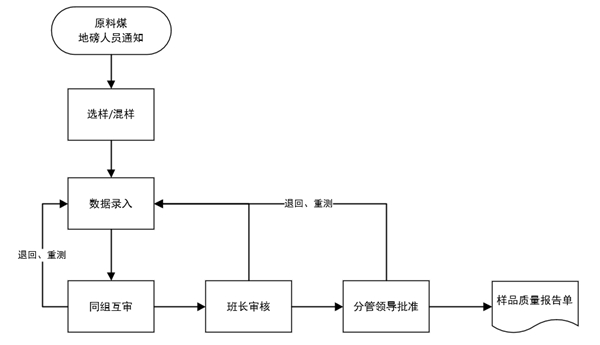 針對(duì)目前煤質(zhì)數(shù)據(jù)分析面臨的問(wèn)題,需要對(duì)煤質(zhì)檢驗(yàn)信息進(jìn)行統(tǒng)一收集、傳遞、管控并出具質(zhì)量報(bào)告單,并通過(guò)多渠道匯總到化驗(yàn)中心。進(jìn)而實(shí)現(xiàn)煤質(zhì)數(shù)據(jù)統(tǒng)一管控、多渠道匯總,煤質(zhì)檢測(cè)數(shù)據(jù)信息化勢(shì)在必行。煤化工生產(chǎn)企業(yè)檢測(cè)流程如下: