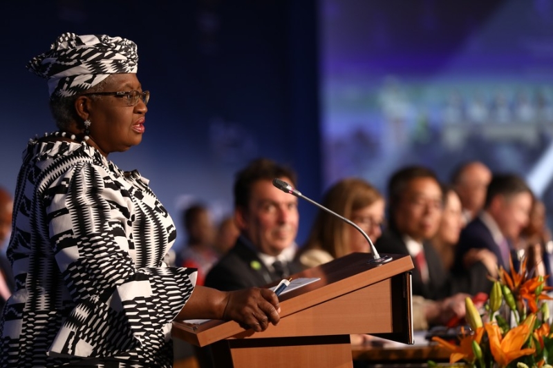 6月12日,世界貿(mào)易組織總干事伊維拉(前)在瑞士日內(nèi)瓦舉行的世貿(mào)組織第12屆部長(zhǎng)級(jí)會(huì)議開(kāi)幕式上致辭。新華社發(fā)(世界貿(mào)易組織供圖)