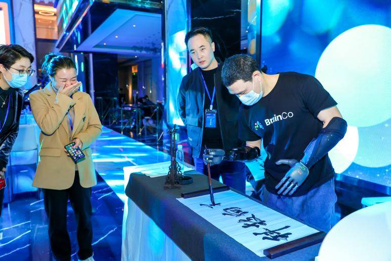 倪敏成就是這些殘疾人中的一位。9歲時(shí)因?yàn)橐馔馐ルp手的他,在2017年接觸到了BrainRobitcs智能仿生手。如今的倪敏成,不但重新拿起了毛筆和乒乓球拍,還能做飯、搬運(yùn)重物。他登上央視《今日中國(guó)》和《百年芳華·紅船遠(yuǎn)航》等節(jié)目,在節(jié)目上接連揮毫,寫出“人工智能”“平安”“大展宏圖”等書法作品,贏得陣陣喝彩,不少作品更是被觀眾所收藏?!八惆榱宋胰甓?,我覺得它已經(jīng)真正成為我身體的一部分?!敝悄芊律值膹?qiáng)大功能為殘疾人開啟了生活新的可能性。