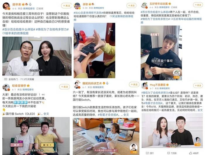 有趣初印象吸引微博網(wǎng)友關(guān)注到貓頭手勢(shì)后,天貓更進(jìn)一步聯(lián)動(dòng)原創(chuàng)KOL在貓頭中沉淀許多真實(shí)、有愛(ài)故事。在#百分百合拍是什么體驗(yàn)#、#情侶為了合拍有多努力#等話題中,情侶、朋友、親子博主們紛紛結(jié)合生活化場(chǎng)景創(chuàng)作,將手勢(shì)合拍上升到默契合拍。這些故事性的“合拍”,讓“比個(gè)貓頭”成為了表達(dá)愛(ài)的最佳手勢(shì)。