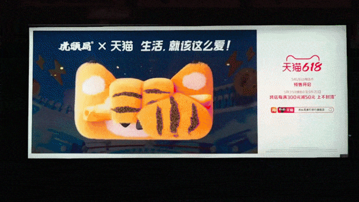 今年618,天貓與42個(gè)大牌一起推出了貓頭聯(lián)合海報(bào)。這些貓頭視覺(jué)在全國(guó)20+個(gè)城市街頭被點(diǎn)亮,刷爆100億+高調(diào)曝光!品牌貓頭動(dòng)畫(huà)視頻也霸屏了全國(guó)超過(guò)20w+梯媒,全面覆蓋用戶線下生活場(chǎng)景。