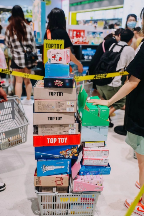 看似爭(zhēng)奪流量的背后,實(shí)則是搶占換購(gòu)先機(jī)。據(jù)了解,在“六一潮玩節(jié)”活動(dòng)首日,TOP TOY創(chuàng)下全渠道單日營(yíng)業(yè)額破1000萬(wàn)的佳績(jī)。當(dāng)天,TOP TOY在廣州東方寶泰潮玩夢(mèng)工廠店內(nèi),特別推出“門店搬空計(jì)劃”。多重優(yōu)惠的巨大吸引力下,門店出現(xiàn)了極為壯觀的搬空結(jié)賬場(chǎng)面。不僅進(jìn)店人數(shù)較預(yù)期翻倍,更是一舉創(chuàng)下門店連續(xù)排隊(duì)超12小時(shí)記錄,迎來(lái)4月開業(yè)以來(lái)的業(yè)績(jī)新高峰。