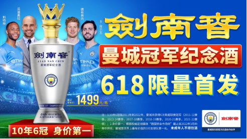 今年“618”期間,在曼徹斯特城足球俱樂部獲得英超聯(lián)賽冠軍的熱烈氛圍中,劍南春聯(lián)合曼城推出高端限量臻品——曼城冠軍紀(jì)念酒,紀(jì)念曼城“10年6冠,身價第一”的偉大成就。