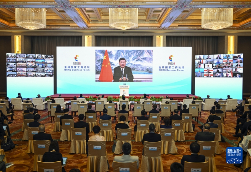 6月22日晚,國(guó)家主席習(xí)近平以視頻方式出席金磚國(guó)家工商論壇開幕式并發(fā)表題為《把握時(shí)代潮流 締造光明未來》的主旨演講。新華社記者 鞠鵬 攝