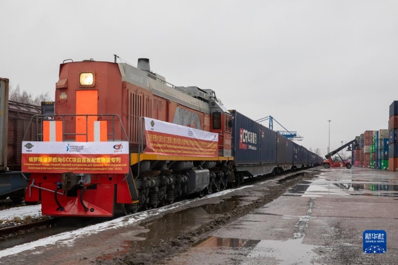 2021年3月15日,由中國成都首發(fā)至俄羅斯圣彼得堡市的中歐班列抵達(dá)俄羅斯圣彼得堡舒沙雷火車站。 新華社發(fā)(俄羅斯鐵路公司十月鐵路局供圖)