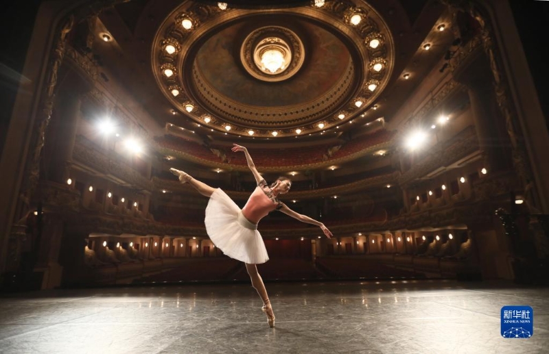 2019年5月24日,在巴西里約熱內(nèi)盧,中央芭蕾舞團(tuán)演員方夢穎在里約熱內(nèi)盧市政劇院排練。中央芭蕾舞團(tuán)攜《大紅燈籠高高掛》來到巴西,為當(dāng)?shù)孛癖姭I(xiàn)上帶有濃郁中國元素的精彩表演。