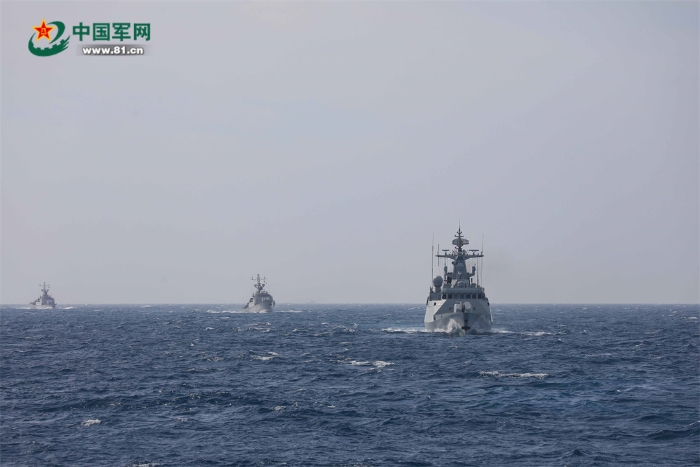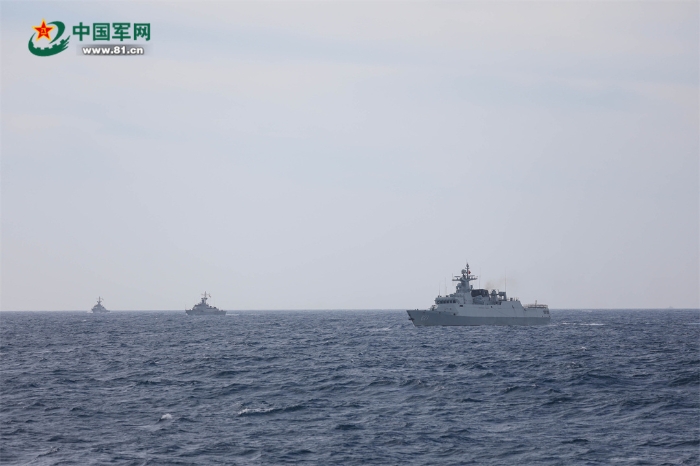 完成聯(lián)合搜救演練后,編隊(duì)運(yùn)動(dòng)演練開始。按照計(jì)劃,參演的4艘艦艇依次組成單縱隊(duì)、單橫隊(duì)和雙縱隊(duì)等隊(duì)形。期間,雙方艦艇溝通順暢、協(xié)同高效。