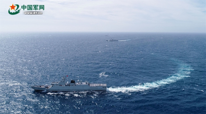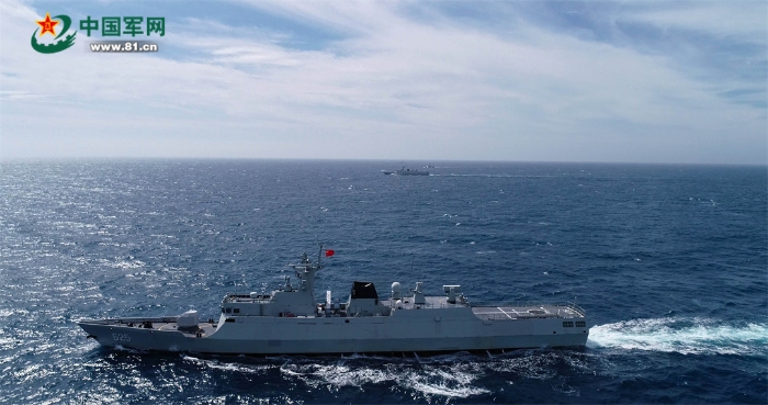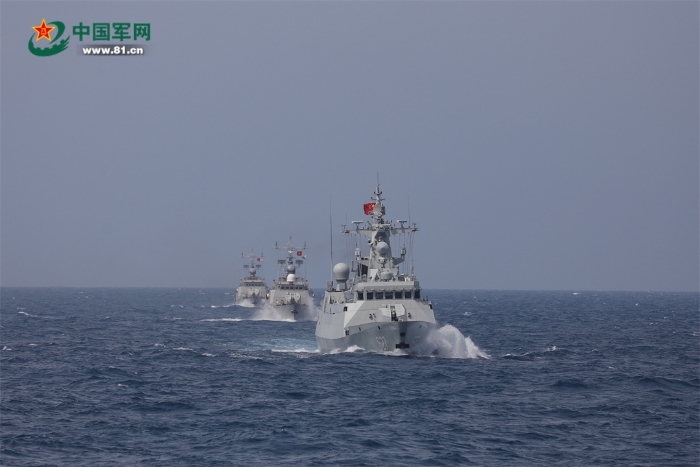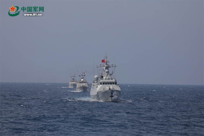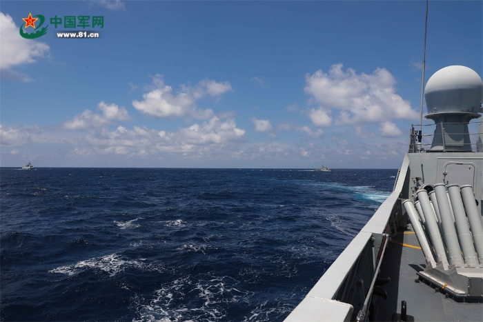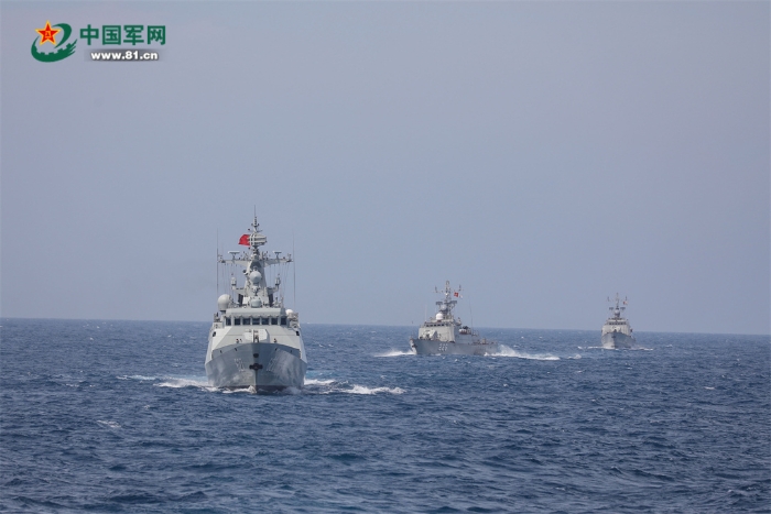 22日,中越雙方聯(lián)合巡邏艦艇編隊(duì)分別航渡抵達(dá)集結(jié)位置,在使用國際頻道通信校波并互致歡迎詞后,組成雙橫隊(duì)沿北部灣中越海上分界線開始巡邏。聯(lián)合巡邏期間,雙方艦艇編隊(duì)加強(qiáng)信息共享,互相通報(bào)巡邏海區(qū)水文氣象、??涨闆r和編隊(duì)航向航速等信息要素。為完善聯(lián)合巡邏組織指揮程序,強(qiáng)化海上合作能力,雙方還相互轉(zhuǎn)換指揮關(guān)系,交替指揮。