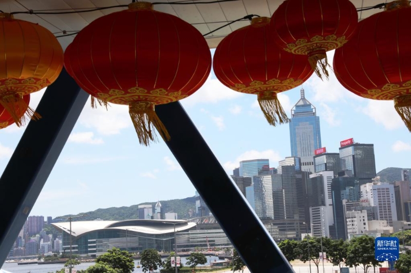 香港中環(huán)海濱長(zhǎng)廊紅燈籠高掛,喜迎香港回歸祖國25周年紀(jì)念日(6月23日攝)。