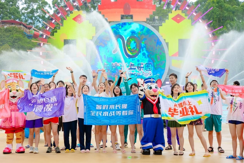 據(jù)悉,6月26日是今年中考結束的第一個周末,在這一天,長隆水上樂園迎來了一群特殊的客人——剛剛完成中高考的學子們!在這一天,水上樂園為他們開啟了暑期整點派對的前哨站派對:全民水戰(zhàn)電音派對!一場夏天的熱舞集結了慶祝的游客,學生們在舞臺放飛手中滿載憧憬的氣球并進行各種畢業(yè)花式主題合影,完成這場專屬的水上畢業(yè)禮。同時造浪池水炮全開,在奧運會級別的舞美聲光電加持下,全場數(shù)萬名玩家一起大打水仗,用水浪告別過去,迎接盛夏的到來!