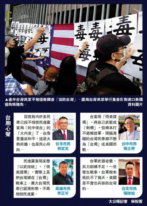 民進黨當(dāng)局妄想“以武拒統(tǒng)”、“倚美謀獨”,實際上是把臺灣綁在“臺獨”戰(zhàn)車上。廣大臺灣民眾已認清形勢,不再相信民進黨。