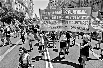上圖:6月26日,示威者在西班牙馬德里參加反對北約峰會的抗議活動。資料圖片