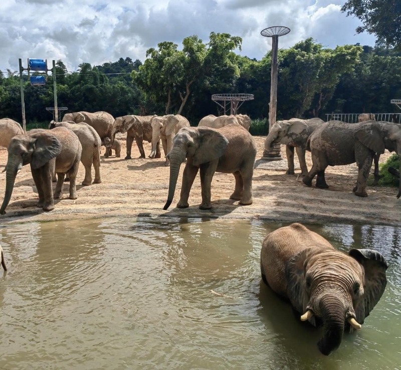 在國(guó)家林業(yè)和草原局、海關(guān)總署等津中兩國(guó)相關(guān)主管部門(mén)的聯(lián)合推動(dòng)之下,根據(jù)中非動(dòng)物保護(hù)合作相關(guān)的計(jì)劃,2015年7月,一群非洲大象來(lái)到清遠(yuǎn)長(zhǎng)隆安家,開(kāi)啟了遷地保護(hù)之旅。長(zhǎng)隆通過(guò)中國(guó)野生動(dòng)物保護(hù)協(xié)會(huì)向津巴布韋國(guó)家保護(hù)基金捐助20萬(wàn)美元,又通過(guò)遷地保護(hù)合作持續(xù)向該基金注資,用于當(dāng)?shù)亟鉀Q大象飲水、反擊盜獵等問(wèn)題。