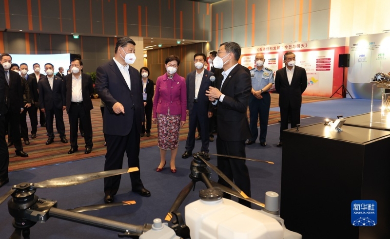 6月30日下午,國家主席習近平在香港特別行政區(qū)行政長官林鄭月娥陪同下,來到香港科學園考察。這是習近平在科學園展廳聽取香港創(chuàng)新科技發(fā)展、深港創(chuàng)新科技發(fā)展互動、香港科學園發(fā)展等情況介紹,觀看香港代表性創(chuàng)科企業(yè)展示。新華社記者
