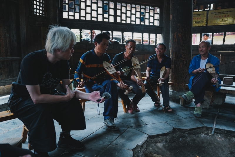 音樂人小河與宰蕩侗寨牛腿琴演奏者交流