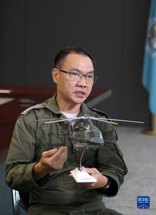 香港特區(qū)政府飛行服務(wù)隊(duì)總監(jiān)胡偉雄接受記者采訪(6月20日攝)。新華社記者 李鋼 攝