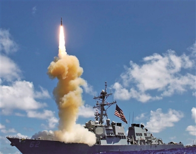 美軍艦艇發(fā)射標(biāo)準(zhǔn)-6導(dǎo)彈。