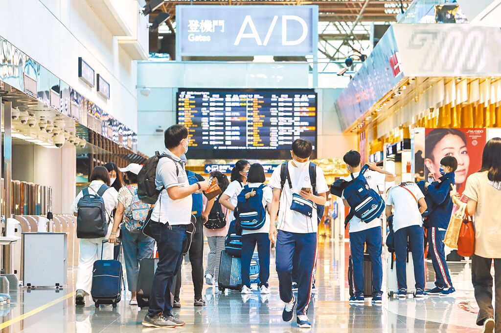 自6月15日,臺(tái)灣地區(qū)入境檢疫天數(shù)從“7+7”放寬為“3+4”,民眾離臺(tái)意愿大增。圖為桃園機(jī)場出境旅客。(資料照/陳麒全攝)