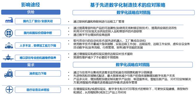 中長期看,從長效治理的角度而言,企業(yè)數(shù)字化有助于提高企業(yè)應對危機的敏捷性。 可通過利用物流自動化裝備及數(shù)字化系統(tǒng)提升底盤運營能力,通過提高零部件和產(chǎn)品的可追溯性(如使用無線射頻識別技術),提高供應鏈的靈活性等基于先進的數(shù)字化制造技術來應對。