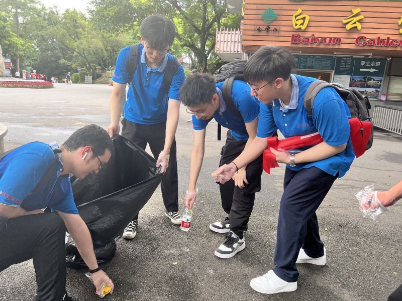 志愿撿跑,共護環(huán)境整潔白云山美麗干凈,但山路兩邊的草叢、樹林里依然有一些“漏網(wǎng)”的垃圾,同時,游客在登山過程中也會不時掉下紙屑、塑料瓶、口罩等雜物,一般很難及時被清理。華夏志愿者們以小組為單位,自備垃圾袋、手套,在登山過程中沿途搜尋,撿拾垃圾,到了山頂,竟然“戰(zhàn)果頗豐”。