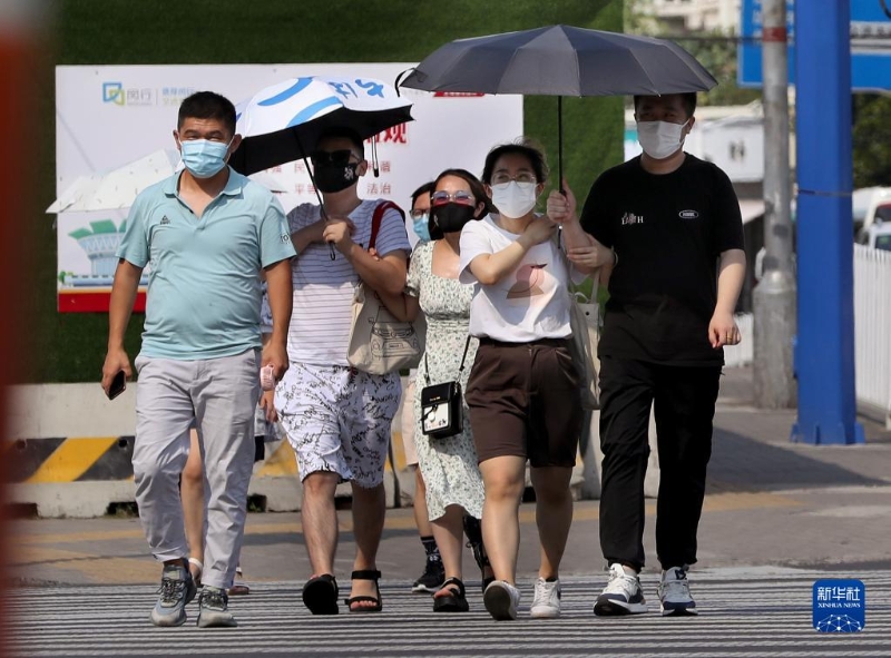 7月10日,在上海市閔行區(qū),行人在烈日下行走。