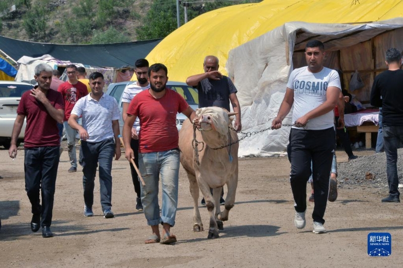 7月9日,人們牽著牛走過土耳其安卡拉一處牲畜市場。西亞北非多國從7月9日開始宰牲節(jié)假期,然而持續(xù)的通貨膨脹沖淡了節(jié)日氛圍。人們無力舉辦傳統(tǒng)慶祝儀式,商家銷售慘淡,不少人直言這個(gè)宰牲節(jié)“不幸?!薄P氯A社發(fā)(穆斯塔法·卡亞攝)