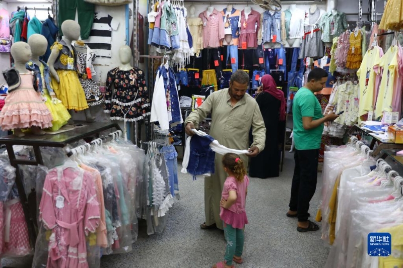 7月6日,人們在埃及開羅一家服裝店購置衣物。西亞北非多國從7月9日開始宰牲節(jié)假期,然而持續(xù)的通貨膨脹沖淡了節(jié)日氛圍。人們無力舉辦傳統(tǒng)慶祝儀式,商家銷售慘淡,不少人直言這個(gè)宰牲節(jié)“不幸?!?。新華社發(fā)(艾哈邁德·戈馬攝)