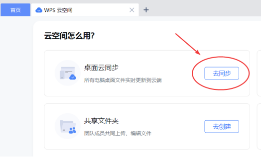 2)點(diǎn)擊「桌面云同步」,選擇「去同步」