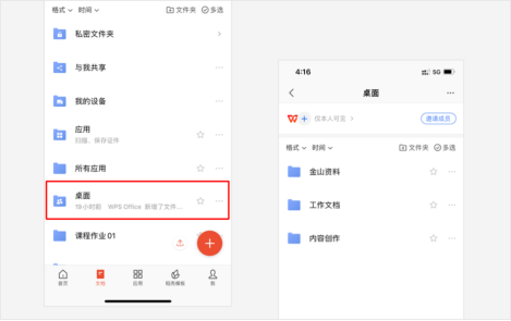WPS 移動(dòng)版,可以在「文檔/云文檔」—「桌面」文件夾中查找。即便不在電腦前,也能用手機(jī)查看電腦文件。