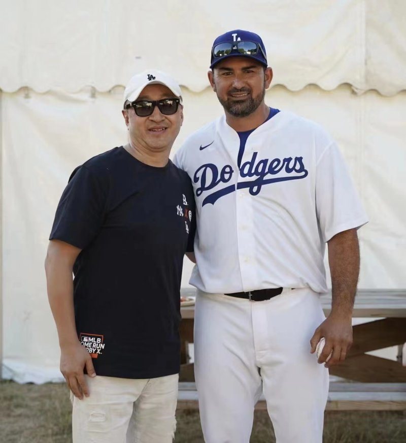 祁冬(左)與前大聯(lián)盟球員阿德里安-岡薩雷斯(Adrian Gonzalez)(右)
