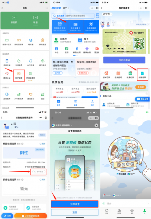 從“騰訊健康”小程序進(jìn)入電子健康卡查看核酸檢測(cè)報(bào)告,可設(shè)置“測(cè)核酸“狀態(tài)