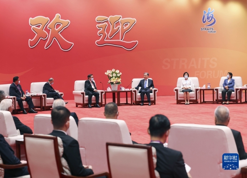 7月13日,中共中央政治局常委、全國政協(xié)主席汪洋在廈門出席第十四屆海峽論壇大會并致辭。這是論壇開幕前,汪洋會見參加論壇的臺灣嘉賓代表。 新華社記者 劉衛(wèi)兵 攝