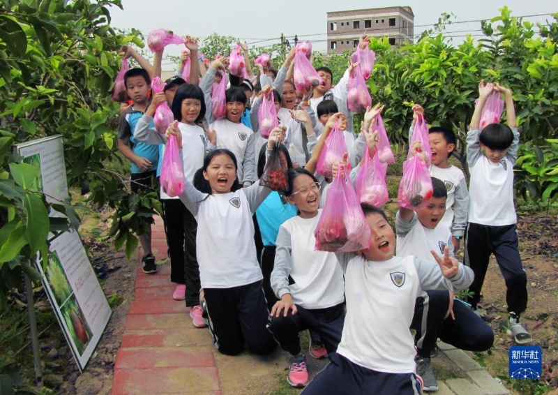 小朋友們在位于廈門市翔安區(qū)的榮杰園觀光農(nóng)場里采摘水果(資料照片)。