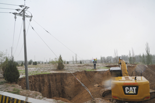 7月14日至15日,寧夏氣象局發(fā)布暴雨或大暴雨天氣預(yù)警信息,目前桿塔塌陷情況緊急,本次強(qiáng)降雨期間極有可能發(fā)展為倒桿斷線以及人身觸電事故。為確保線路安全穩(wěn)定運(yùn)行和用戶可靠供電,國網(wǎng)寧夏電力寧東供電公司立即啟動應(yīng)急處置程序,各級領(lǐng)導(dǎo)到崗到位,現(xiàn)場研究制定搶修方案,周密部署搶修力量,嚴(yán)把現(xiàn)場安全管控,冒雨組織緊急消缺。