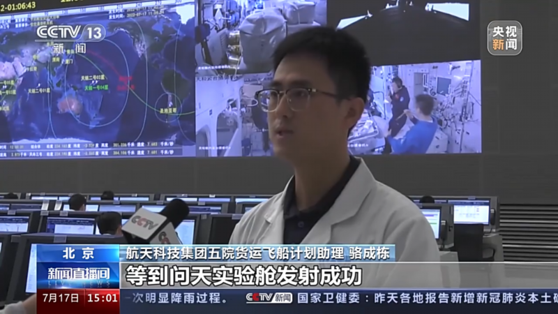 駱成棟:天舟三號(hào)目前已經(jīng)進(jìn)入一個(gè)獨(dú)立飛行的狀態(tài),然后等到問(wèn)天實(shí)驗(yàn)艙發(fā)射成功與這個(gè)空間站組合體完成對(duì)接之后,我們的天舟三號(hào)將會(huì)觸控離軌,屆時(shí)我們將會(huì)通過(guò)兩次軌道的控制,然后將天舟三號(hào)飛船的軌道降低。