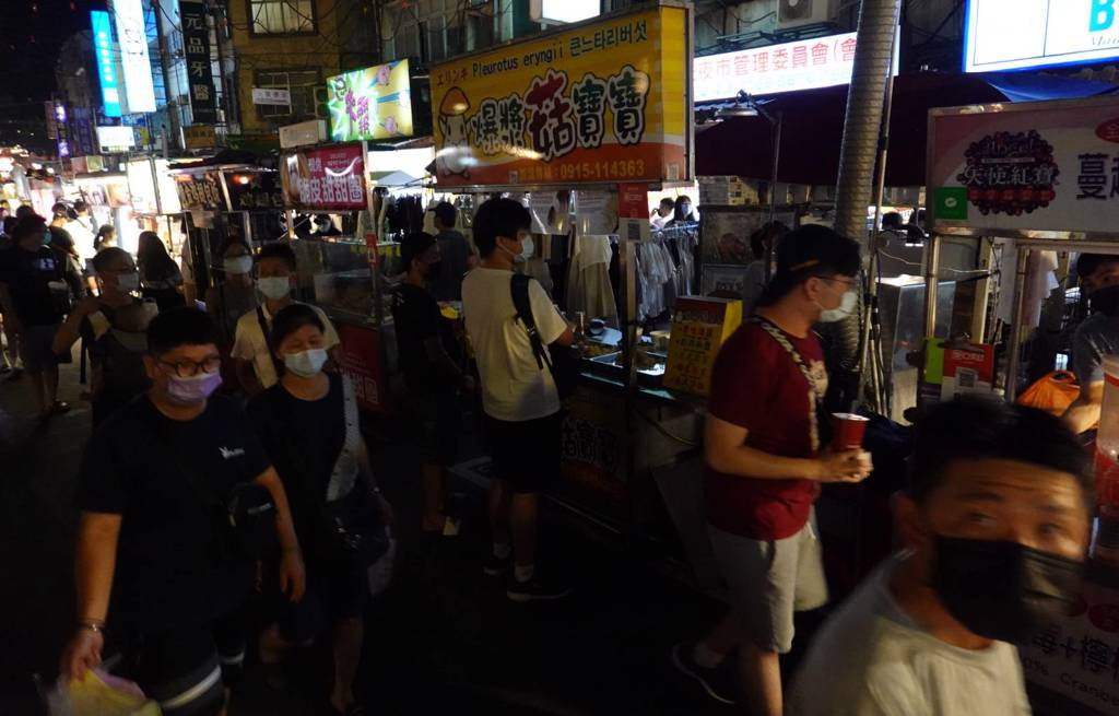 臺(tái)北市饒河街夜市16日晚間發(fā)生停電,店家靠著微弱的燈光做生意,民眾摸黑逛街。(姚志平攝)