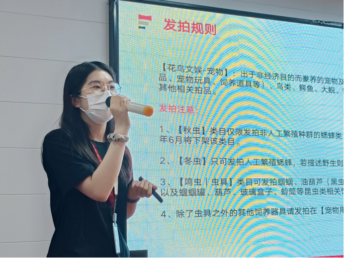 微拍堂類目運營王詩雨現(xiàn)場以秋蟲行業(yè)為例,向?qū)庩柕捏吧碳覀兘榻B了秋蟲類目在微拍堂的行業(yè)狀況,并現(xiàn)場分享了往期的優(yōu)質(zhì)類目活動,鼓勵大家努力經(jīng)營,共同促進秋蟲行業(yè)在微拍堂的影響力。