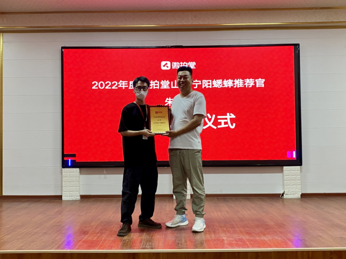 在最具矚目的授牌儀式環(huán)節(jié)中,微拍堂特授予朱軍會長“2022年度微拍堂山東寧陽蟋蟀推薦官”的稱號,共同繼承發(fā)揚寧陽蟋蟀文化,讓大眾認知蟋蟀這種民俗昆蟲的魅力,也為當(dāng)?shù)卣Wo寧陽傳統(tǒng)蟋蟀資源起到應(yīng)盡的義務(wù)。