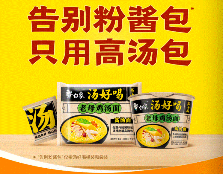 2013年,白象食品再次將明星產(chǎn)品大骨面進(jìn)行了全新升級,開啟了從“白水泡面”到“骨湯泡面”的新時代。