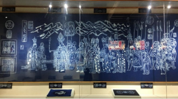 為了將《張勝溫畫卷》以扎染技法呈現(xiàn)給世人,2020年初,國家級(jí)白族扎染代表性傳承人段銀開與璞真白族扎染博物館文博專家張紳、云南省級(jí)傳承人段樹坤等人,對(duì)畫卷進(jìn)行再次創(chuàng)作,完成了畫卷開篇乾隆皇帝撰寫的序言和“蠻王禮佛圖”。在制作過程中,團(tuán)隊(duì)經(jīng)反復(fù)研究,克服了“在放大尺寸基礎(chǔ)上保證人物清晰度”等難題。作品問世,為兩岸民眾了解《張勝溫畫卷》提供了新的形式。
