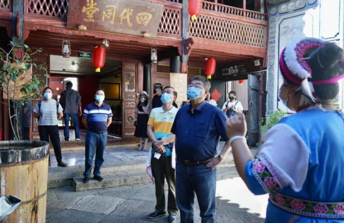 在國家方志館南方絲綢之路劍川分館、沙溪古鎮(zhèn),一行人了解了南方絲綢之路歷史和馬幫文化;在喜洲古鎮(zhèn),參觀了白族農(nóng)耕藝術(shù)館和嚴(yán)家大院,通過圖片、影像、與白族文化學(xué)者趙勤老師對(duì)談等方式,深入感知白族民居“三坊一照壁、四合五天井”的建筑特色,了解喜洲商幫的興起和白族社會(huì)、經(jīng)濟(jì)、文化的發(fā)展歷史。
